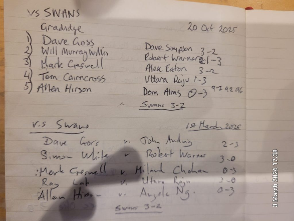 Result: Swans 3 – Gradidge 2